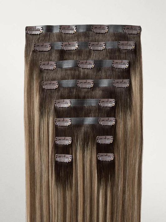 Seamless Ash Brown Balayage Clip-Ins (150g) - Curly